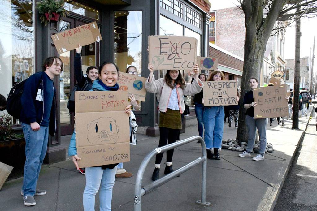 PORT TOWNSEND — A group of about 50 Port Townsend High School students took to Water Street on Friday to voice their concerns about climate change, saying not enough is being done to cut emissions and stop global warming.