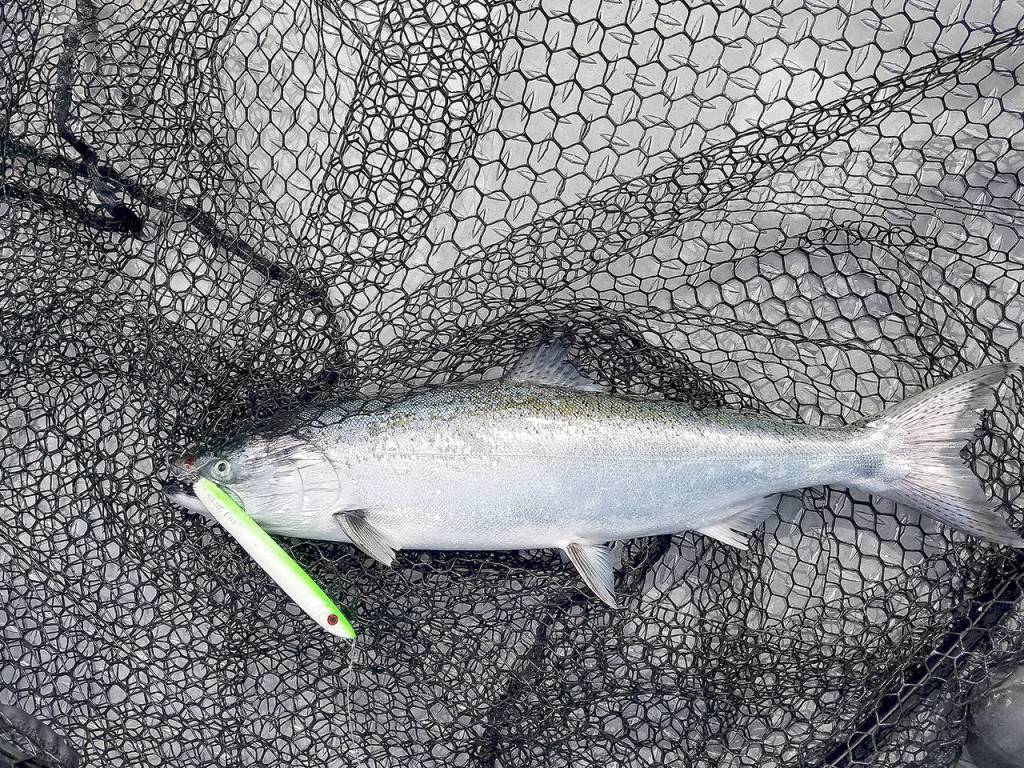 BLACKMOUTH ANGLERS HAVE taken advantage of the relatively benign weather and tidal conditions in recent weeks around the Port Angeles area, successfully jigging for chinook feasting on an abundant supply of candlefish.