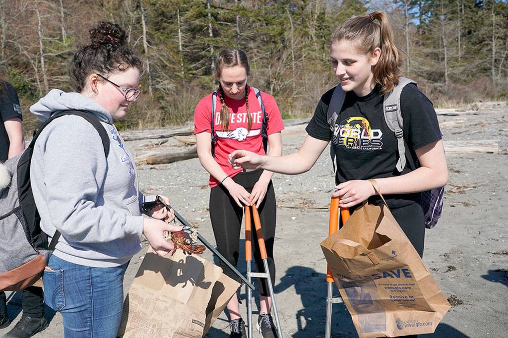 They were part of about 18 students from Olympic High School in Silverdale participating in an Adventure Club beach cleanup day at Fort Worden State Park in Port Townsend.