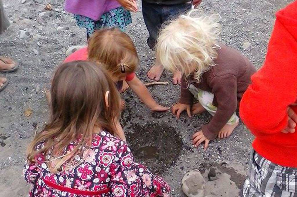 SEQUIM — The sun is peeking out of the clouds, birds zigzag overhead and sounds of the river and children’s laughter fill the air. Adventure Club is getting started for two hours of play and learning outdoors.
