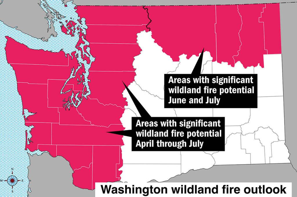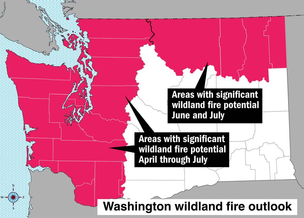 “Overall, much of Washington and northwestern Oregon have accumulated significantly less than average rainfall since the first of the year,” the fire outlook said.