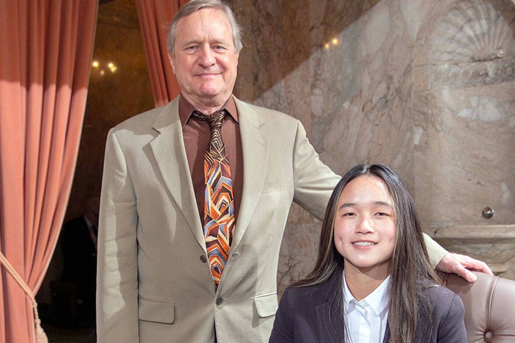 Port Angeles High School student Abby Sanders, shown with her legislative sponsor, state Rep. Steve Tharinger, recently served as a page in the House of Representatives in Olympia. The week-long page program involves a variety of responsibilities and daily civics instruction. More information about the program is available at www.tinyurl.com/PDN-Student-Pages.
