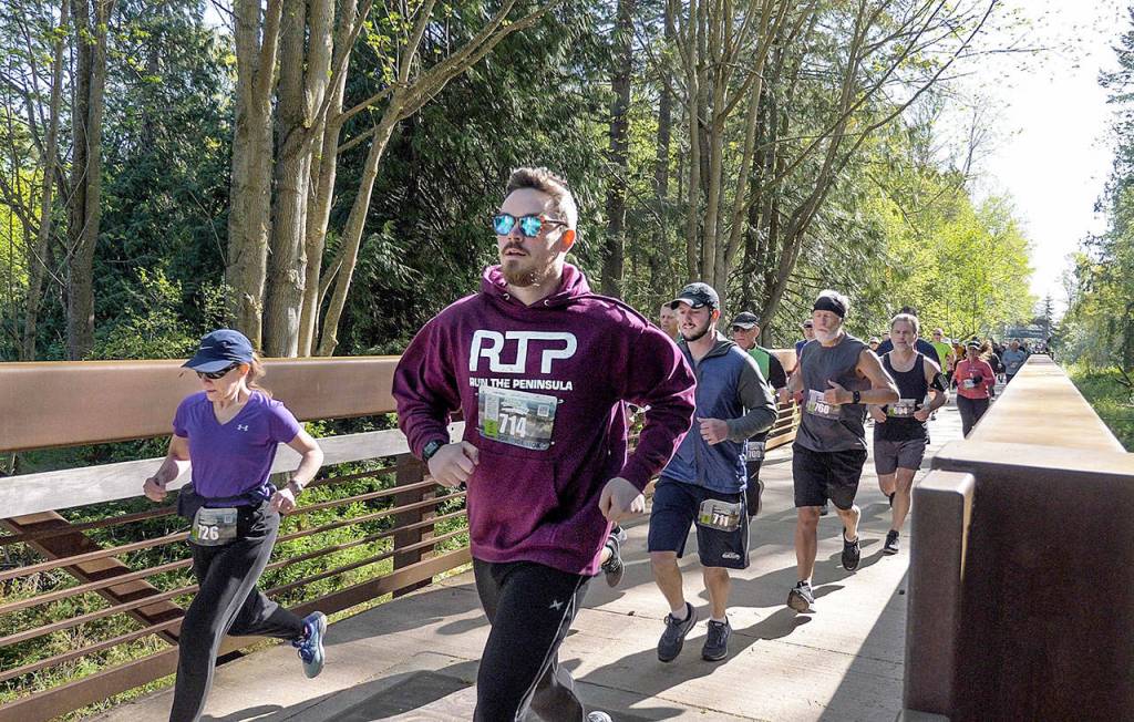 The Railroad Bridge Run, sponsored by the Peninsula Daily News and the Sequim Gazette, is part of a five-race series put together by the Port Angeles Marathon Association, which also manages the North Olympic Discovery Marathon. The Olympic Medical Center also presented the Railroad Bridge run.