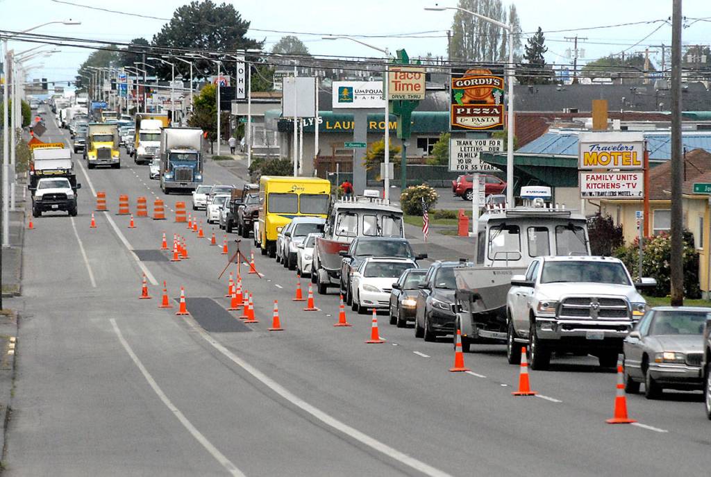 PHOTO: Road work backs up traffic in Port Angeles