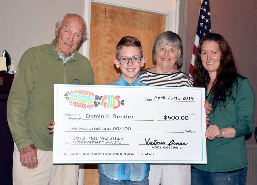 From left, Gene Turner, Dominic Reader, Norma Turner and Victoria Jones, North Olympic Discovery Marathon race director. (Dominic Reader Photo/Courtesy of PASD)