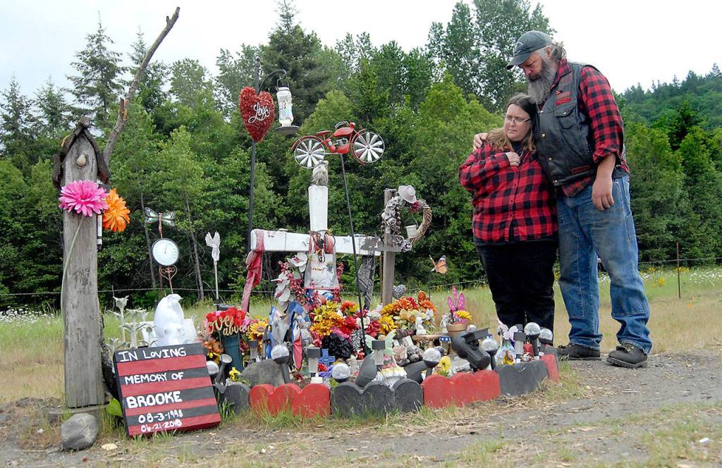 PORT ANGELES — Kim Bedinger has accepted the fate of a flower-filled memorial at Morse Creek on U.S. Highway 101 where her 19-year-old daughter, Brooke, died in a motorcycle wreck almost a year ago.