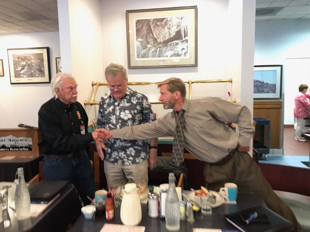 Richard Ruud, a 40-year incumbent, joined challengers Keith Cortner and Steve Hopf in the program during the hourlong weekly breakfast-meeting sponsored by the Port Angeles Business Association as the Aug. 6 primary approaches. Ballots will be mailed to voters July 17.