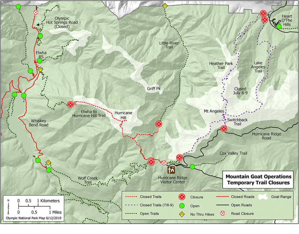 Hurricane Hill Road, beyond the Hurricane Ridge Visitor Center parking lot, will be closed to all access during the operational period, including the Hurricane Hill Trail, Little River Trail and Wolf Creek Trail.