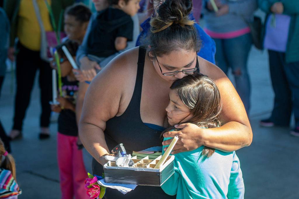 PORT ANGELES — Parents held their crying children close as more than 100 people mourned Valerie Kambeitz and her children Lilly Kambeitz, 9, Emma Kambeitz, 6, and Jayden Kambeitz, 5, during a vigil in their honor Monday.