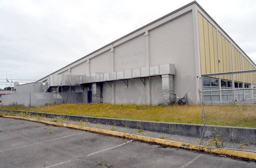 William Shore Memorial Pool, shown Thursday, awaits demolition to make way for a new swimming pool complex. Work is expected to begin this month despite a $3.1 million increase in the total cost of the project. (Keith Thorpe/Peninsula Daily News)