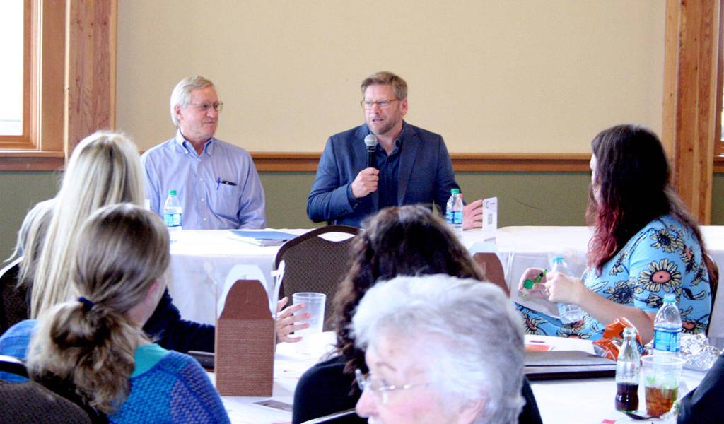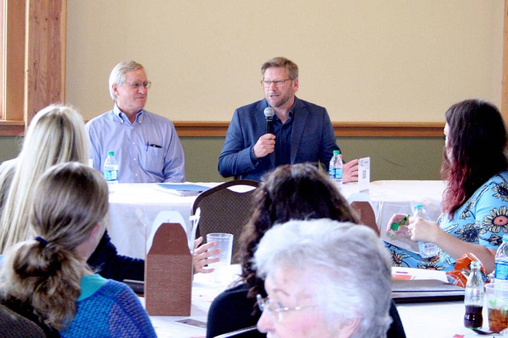 State Reps. Steve Tharinger, D-Port Townsend, and Mike Chapman, D-Port Angeles, spoke during the annual legislative recap luncheon hosted by the Chamber of Jefferson County at the Fort Worden Commons.