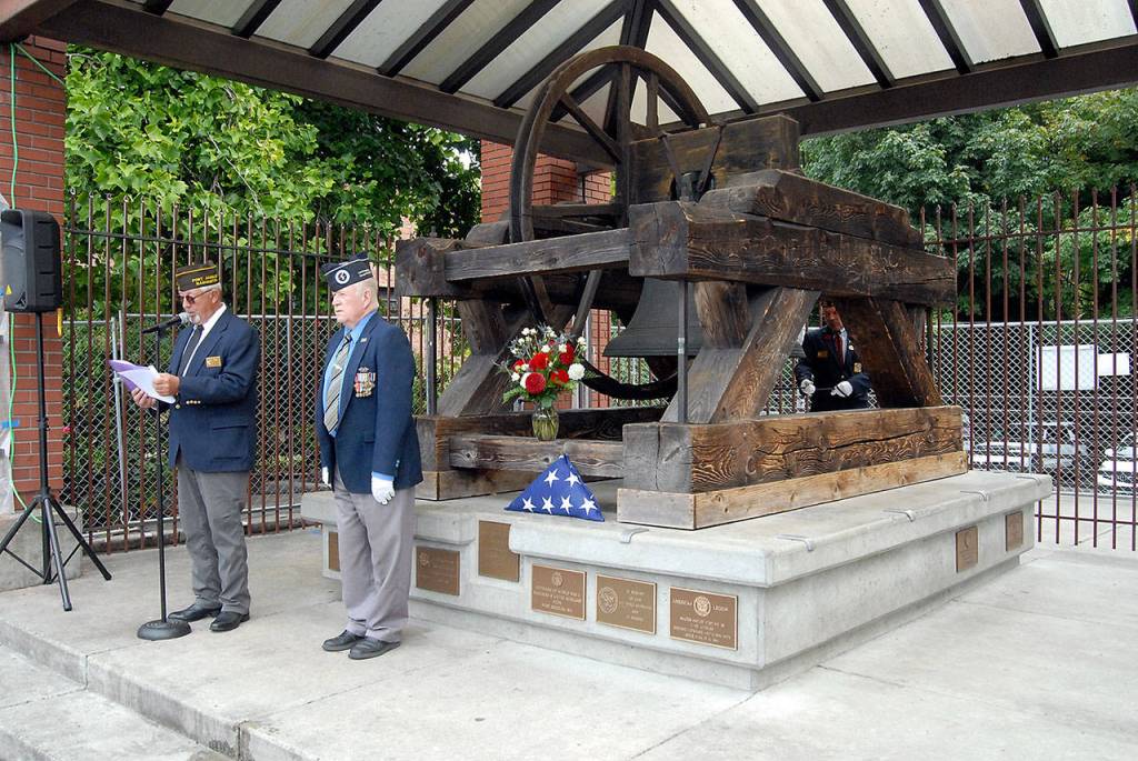 Gerald Rettella, head of the Olympic Peninsula Chapter of the Korean War Veterans Association, led Friday’s monthly remembrance ceremony. The ringing of the bell — one toll for every deceased veteran — is central to rite.