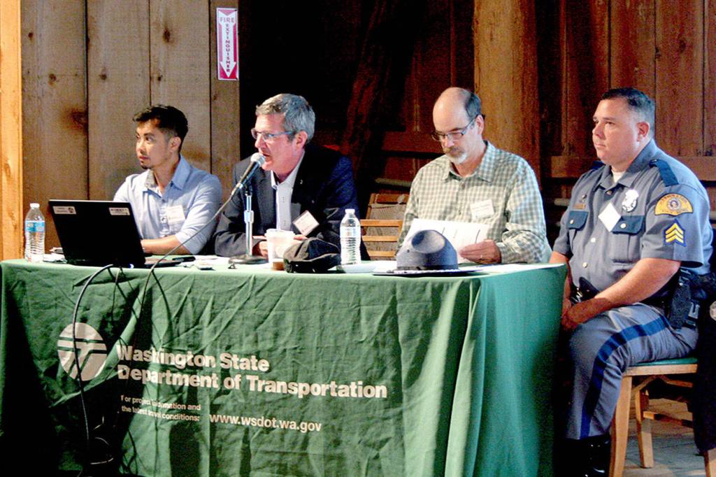 County Public Works Director Monte Reinders and State Patrol Sgt. Brian George joined Wynands and Joseph Perez, Transportation’s Olympic Region planning and program manager, for a presentation during the project’s second open house.