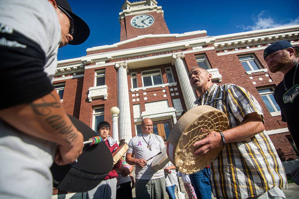 After Howell spoke, tribal drummers sang a song of love from the Hoh Tribe for the crowd that had gathered.