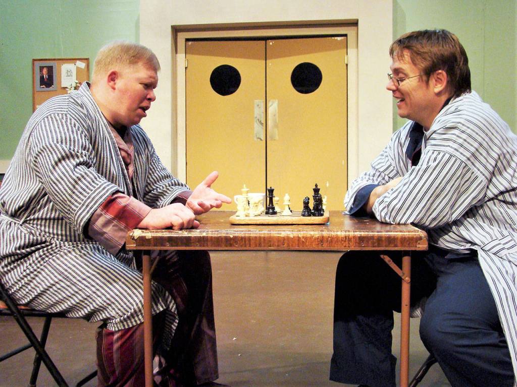 Gately (Jonas Brown), a hillbilly, fiddles compulsively with a disemboweled radio. Silvio (Jeff Ryser), a streetwise, big-city type, is addicted to “flashing.”