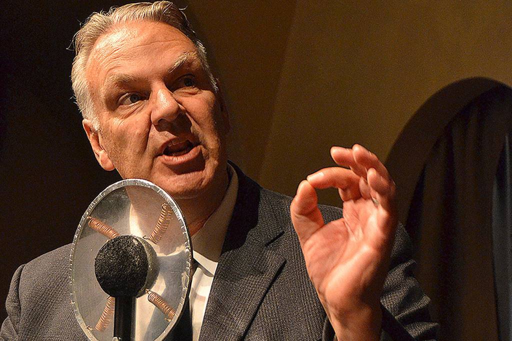 Mark Valentine narrates Orson Welles’ parts from the radio play “War of the Worlds.” Director Olivia Shea said the original play is recreated but with more audience interaction and emotion. (Matthew Nash/Olympic Peninsula News Group)