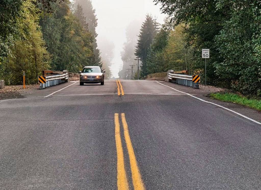 SEQUIM — A driver crosses the Ward Bridge along Woodcock Road and over the Dungeness River after it was reopened earlier this month.