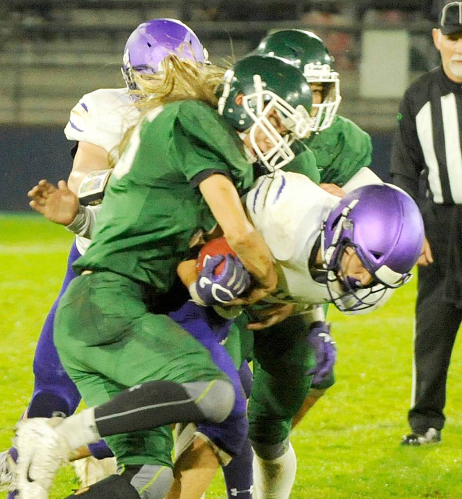 DL: Derick Collins, jr., Bremerton; Andrew Jones, sr., North Kitsap; Austin Newton, jr., Sequim; Cameron Bailey, sr., Olympic; LB: Kaipo Retome, sr., Bremerton; Cache Holmes, jr., North Kitsap; Isaiah Cowan, jr., Sequim; Derek Bowechop, sr., Port Angeles; DB: Josh Fisher, sr., North Kitsap; Kyler Coe-Yarr, soph., Kingston; Michael Young, jr., Sequim; Adam Johnson, sr., Olympic; Tyler Bowen, sr., Port Angeles.
