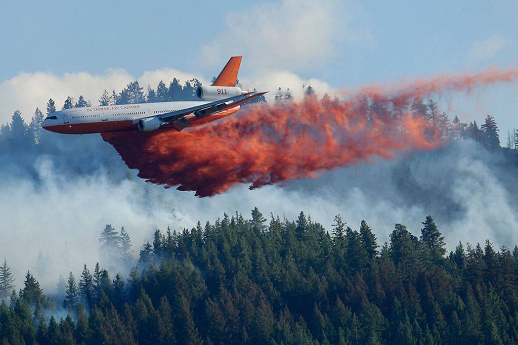 In this Aug. 21, 2015, file photo, a tanker airplane drops fire retardant on a wildfire burning near Twisp. (Ted S. Warren/The Associated Press)