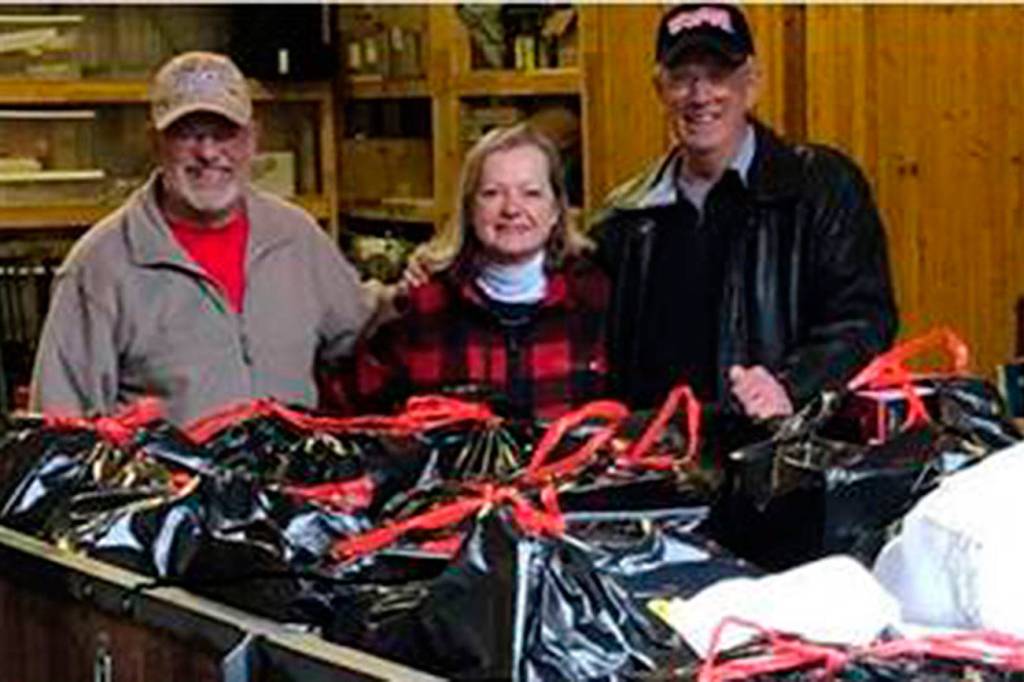 According to a press release, Brown took advantage of post-holiday sales in January to buy the toys and stored them in her heated shop until volunteers Eric Miner and Mark Schildknecht came and picked them up.