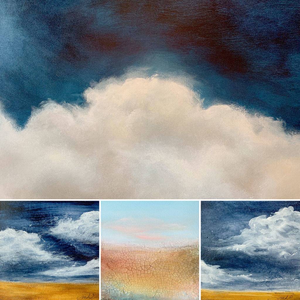 Born and raised in the Pacific Northwest, DeScala said she gains inspiration from the diverse landscape around her, drawing parallels between events in nature, like storms and seasons, with the human experience. Her newest show is focused on cloudscapes.