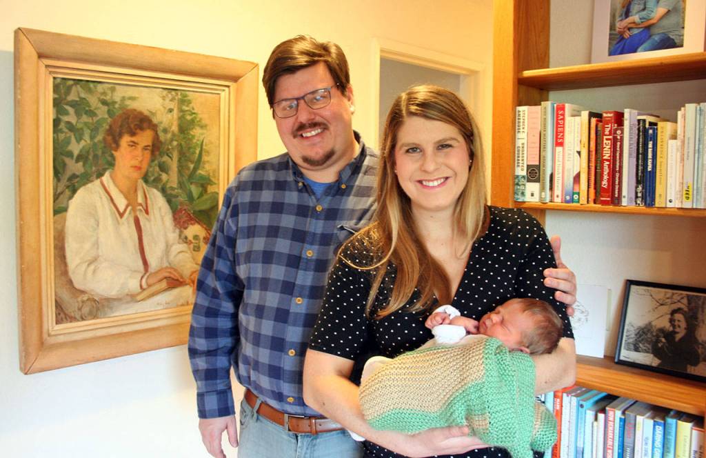 Nat Jacob, left, and Port Townsend City Council member Ariel Speser welcomed their daughter, Ilana Coho Jacob, on Jan. 5. Speser is the first City Council member in at least 15 years to have a baby while she’s in office, according to city staff members. (Brian McLean/Peninsula Daily News)
