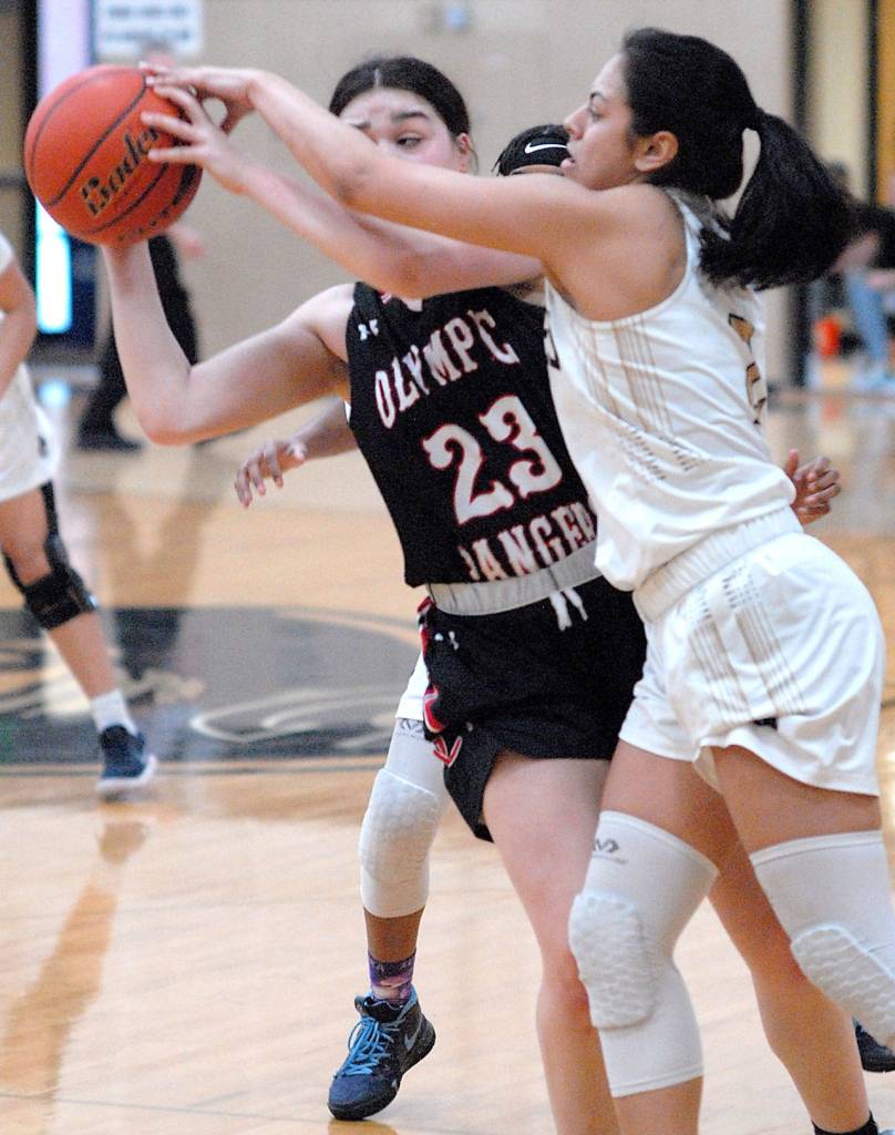 The women built up a lead of 63-14 after three quarters. They held the Trojans to just 17.9 percent shooting from the floor and 10 percent shooting (2 for 20) from 3-point range. For the entire game, Olympic made just 10 field goals.