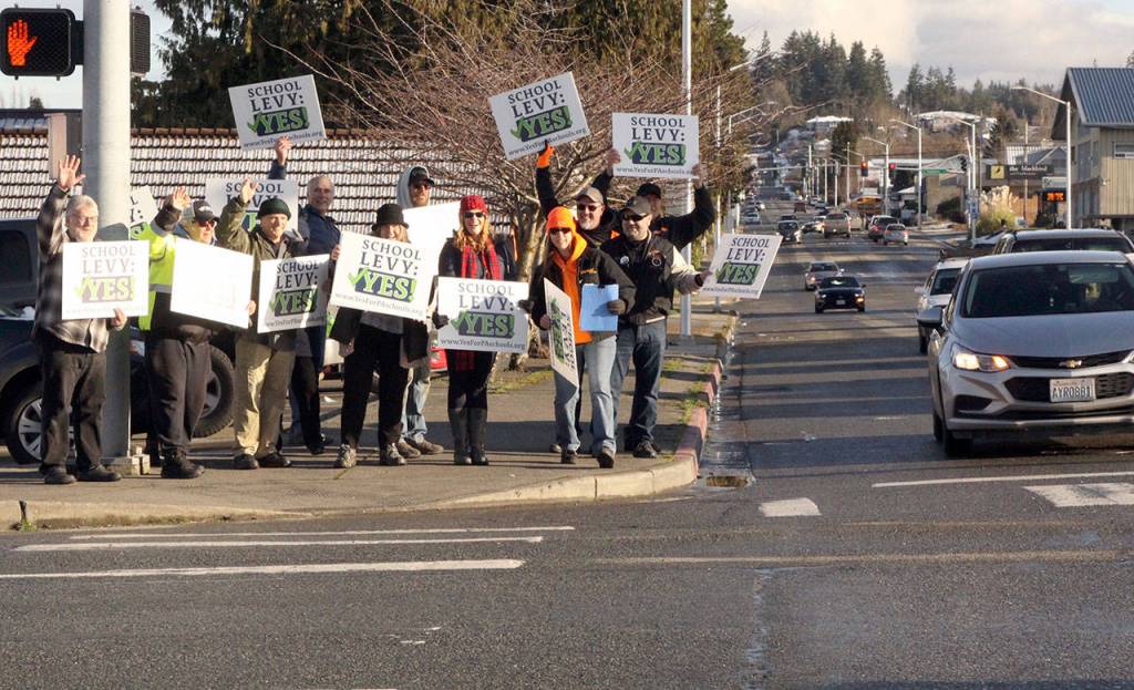 Representatives of other schools will be at other Port Angeles intersections this week waving the banners for the levy, which is on Tuesday’s special election ballot.