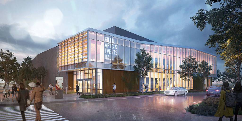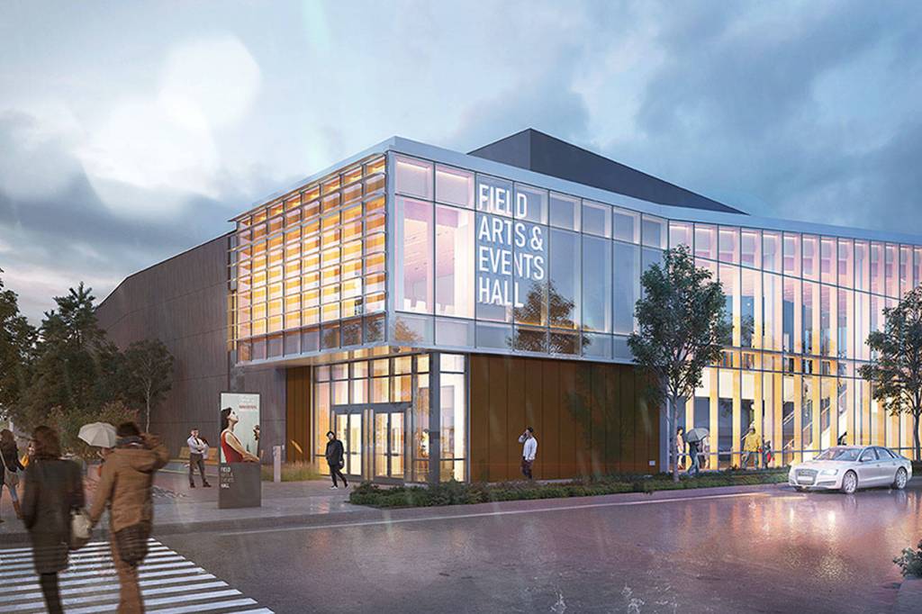 When the campus is finished, the 41,000-square-foot glass-wrapped Field Arts and Event Hall will join a companion Lower Elwha Klallam cultural center and a new marine discovery center.