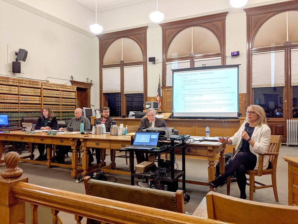 The hearing was conducted by county commissioners following a presentation from Community Development Director Patty Charnas.