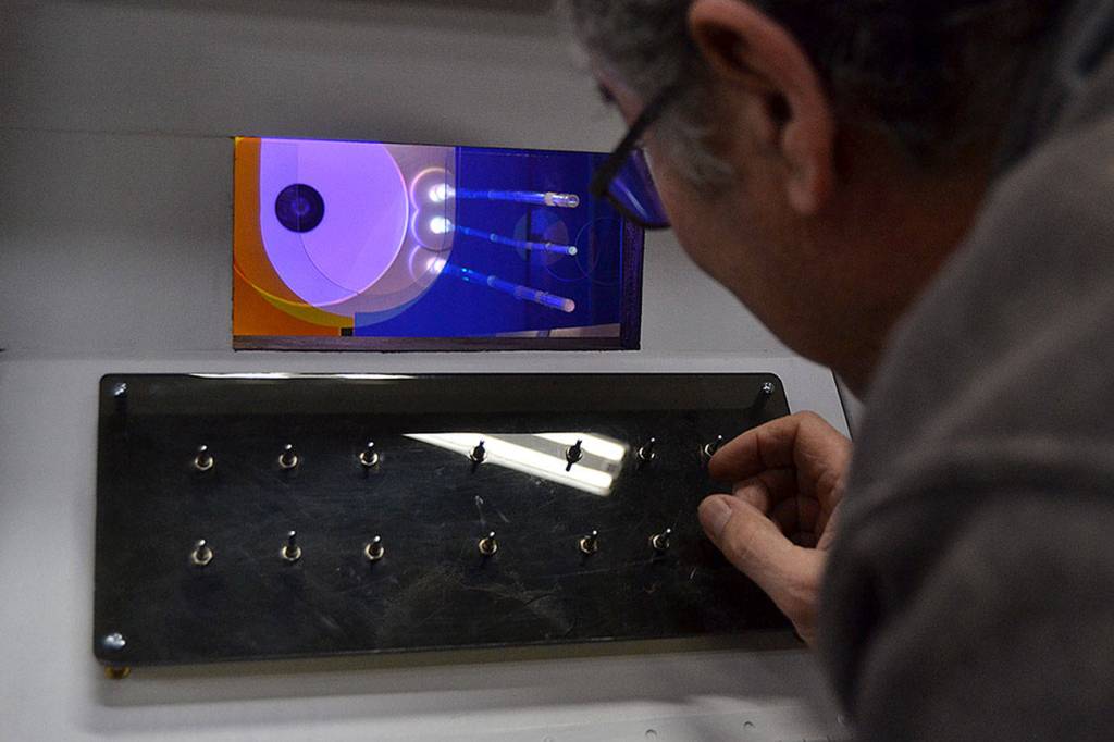 Once inside, visitors can see 10 stations — seven viewing stations, another for mixing blue and yellow light, a kinetic shadow catcher, and artist Craig Robinson painting in ultraviolet light with UV sensitive paints.