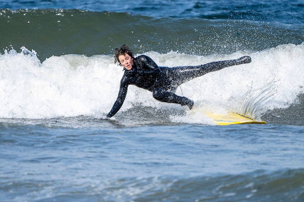 PORT TOWNSEND — An unidentified woman takes a fall while surfing in the choppy waters off Point Hudson last weekend.