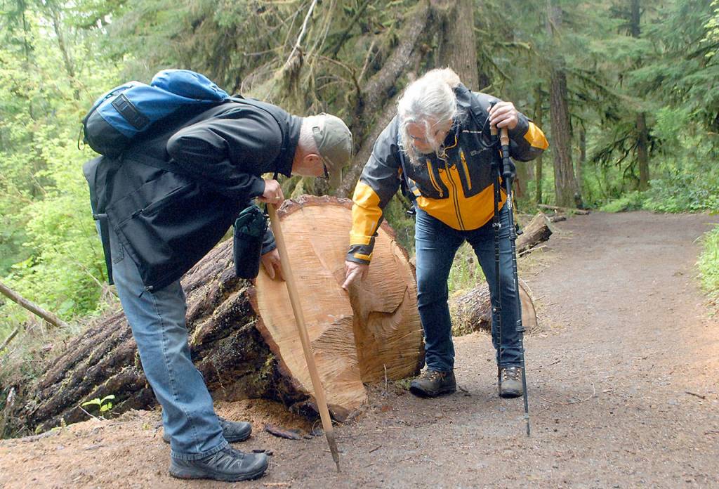 OLYMPIC NATIONAL PARK — Korey Peterson of Poulsbo crosses the foot bridge over Barnes Creek near Lake Crescent in Olympic National Park on Saturday, May 16, 2020, one day after officials reopened limited areas on the north side of the park.