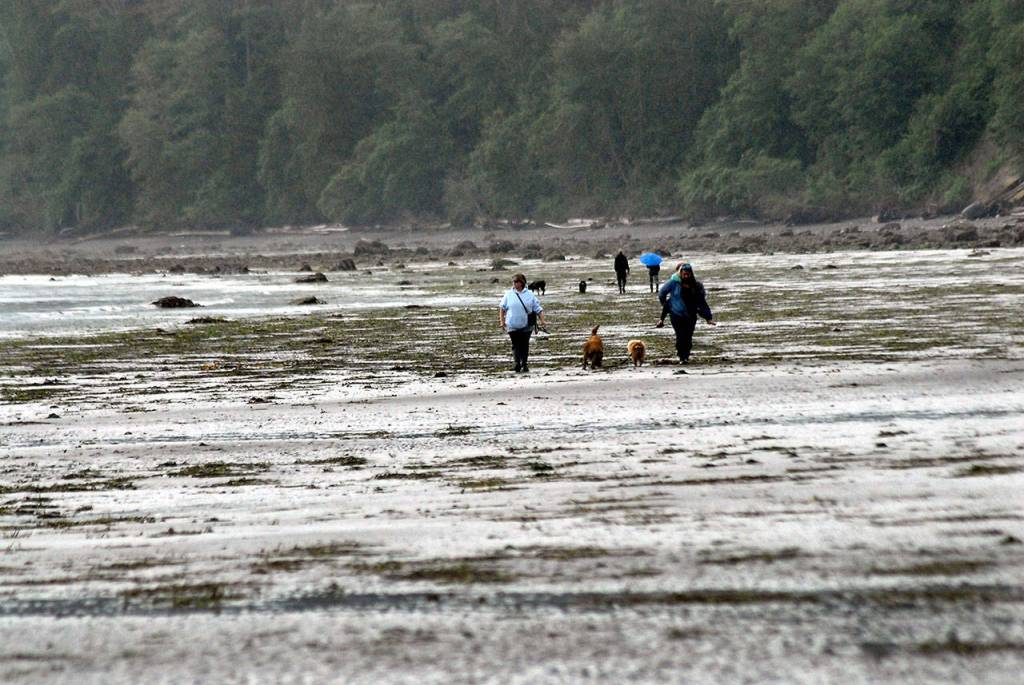 Jenn and Jasper Peach of Port Angeles explore the tidal zone near Freshwater Bay County Park west of Port Angeles during Saturday’s lowest tide of the year.