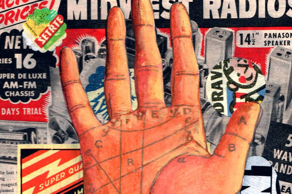 Returning to collage and acrylic, Grover’s recent work also conveys a nostalgic mid-century essence with old catalog, clippings and objects from another era, she added.