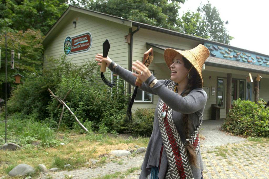 Loni Grinnell-Greninger, Jamestown S’Klallam Tribal Council vice-chair, performs a tribal blessing for the soon-to-be expanded Dungeness Audubon River Center. (Photo by Silas Crews, Story Crane Productions)