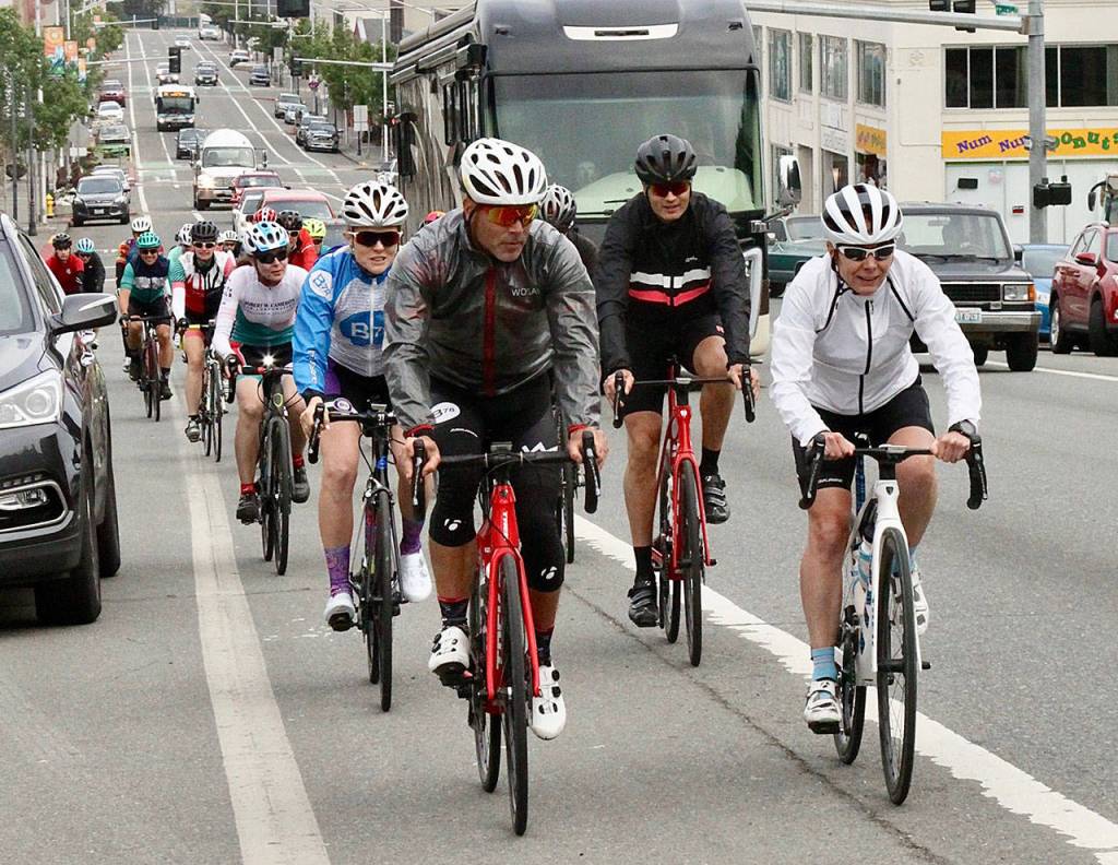 “Because of COVID, we didn’t really advertise it or try to get a lot of cyclists here,” Port Angeles Regional Chamber of Commerce executive director Marc Abshire said. “We are probably going to end up about 50 percent of our normal number of cyclists. We always get a large number of Canadians that come over on the first ferry on ride day, but obviously with the border closed, they will miss this event.”