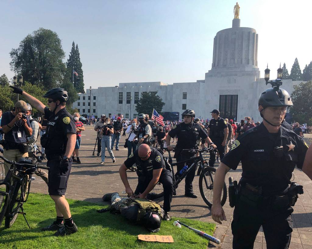 Later, pro-Trump supporters and counter-protesters clashed in Oregon’s capital city of Salem.