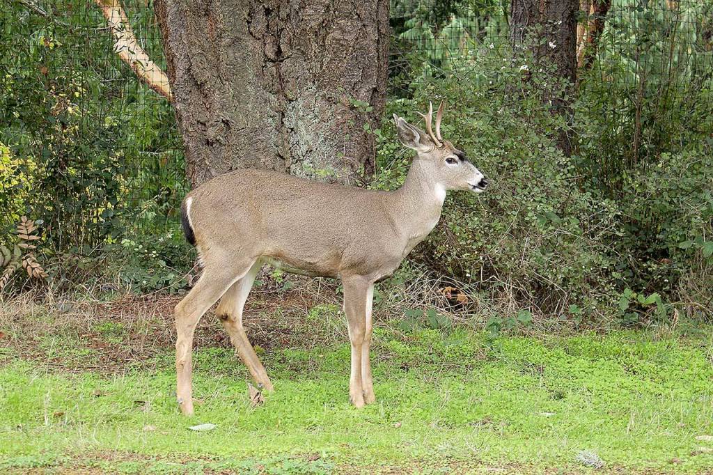 A deer walks down the side of Redwood Street on Monday, Oct. 19, 2020, in Port Townsend.