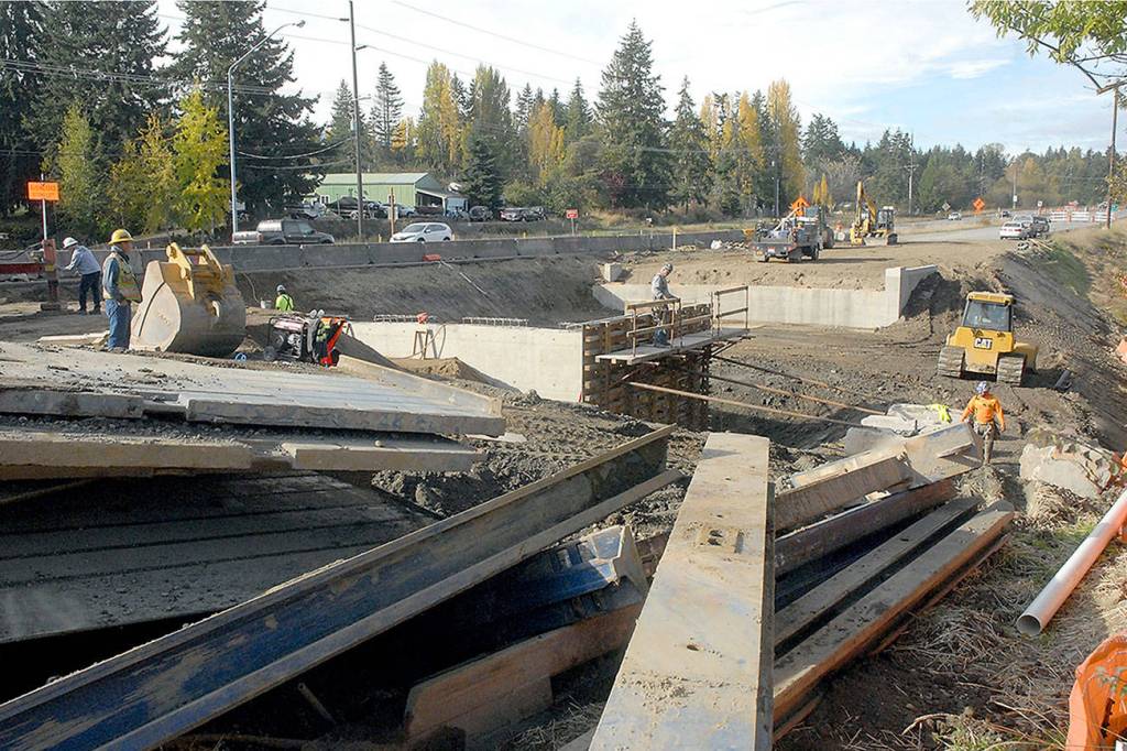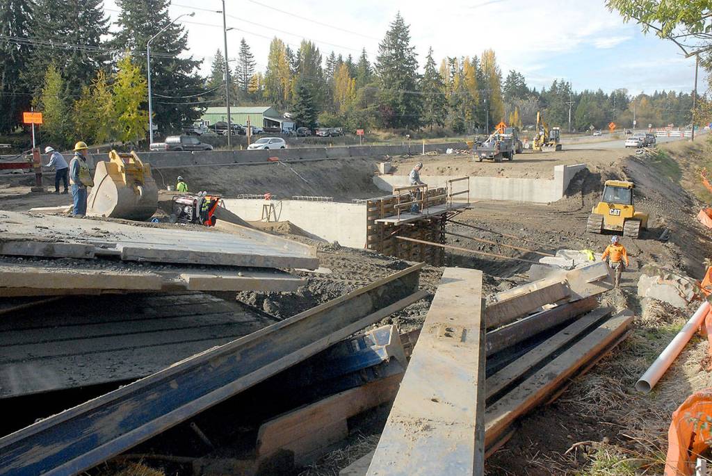 Crews this week were working on abutment walls and foundations for the western half of the Bagley Creek bridge. Girders for the bridge are scheduled to be delivered during the second week of November, Werner said.