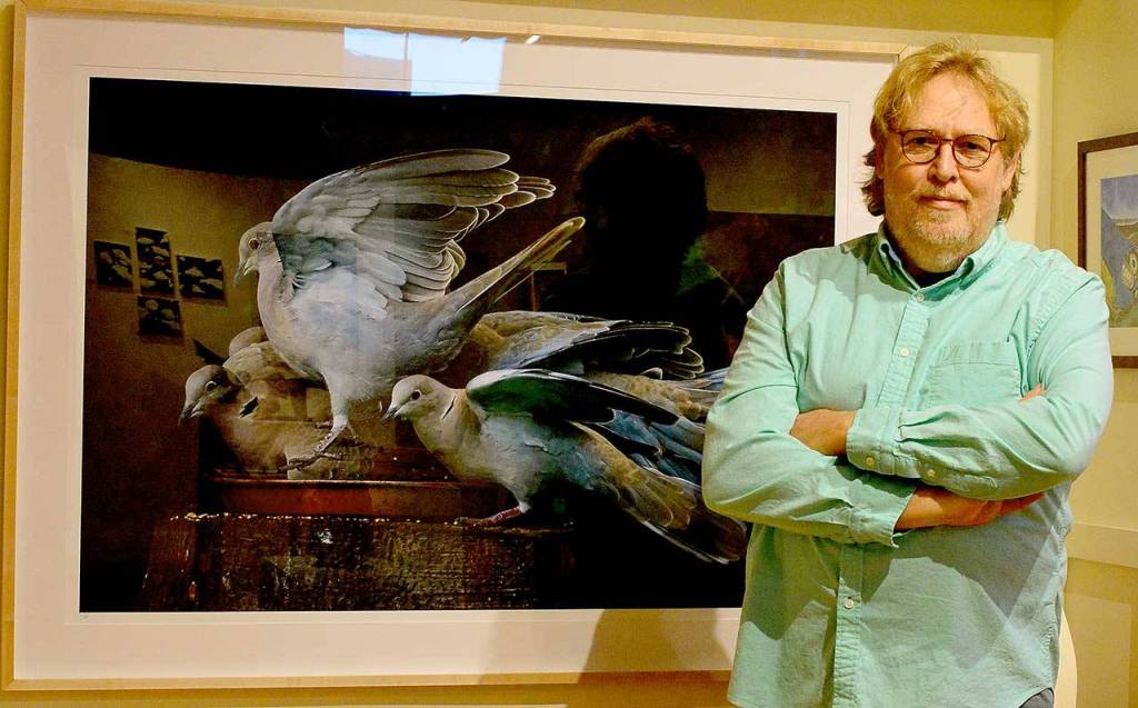 Those items include Kerry Tremain’s photograph “Neah Bay Doves” shares the site with “Michelle” and “Scarlet,” two umbrellas designed by painter Karen Sistek; “Wake-Up Call,” a Max Grover painting paired with a bag of Sunrise Coffee, is on the same page with “It’s 5 o’clock Somewhere,” a collection of hand-painted Lolita martini glasses. Orca earrings, a beaded sari and a Marimekko quilt are also up for bid, as is the late Russell Jaqua’s “Human Form Spirit Stick” sculpture.