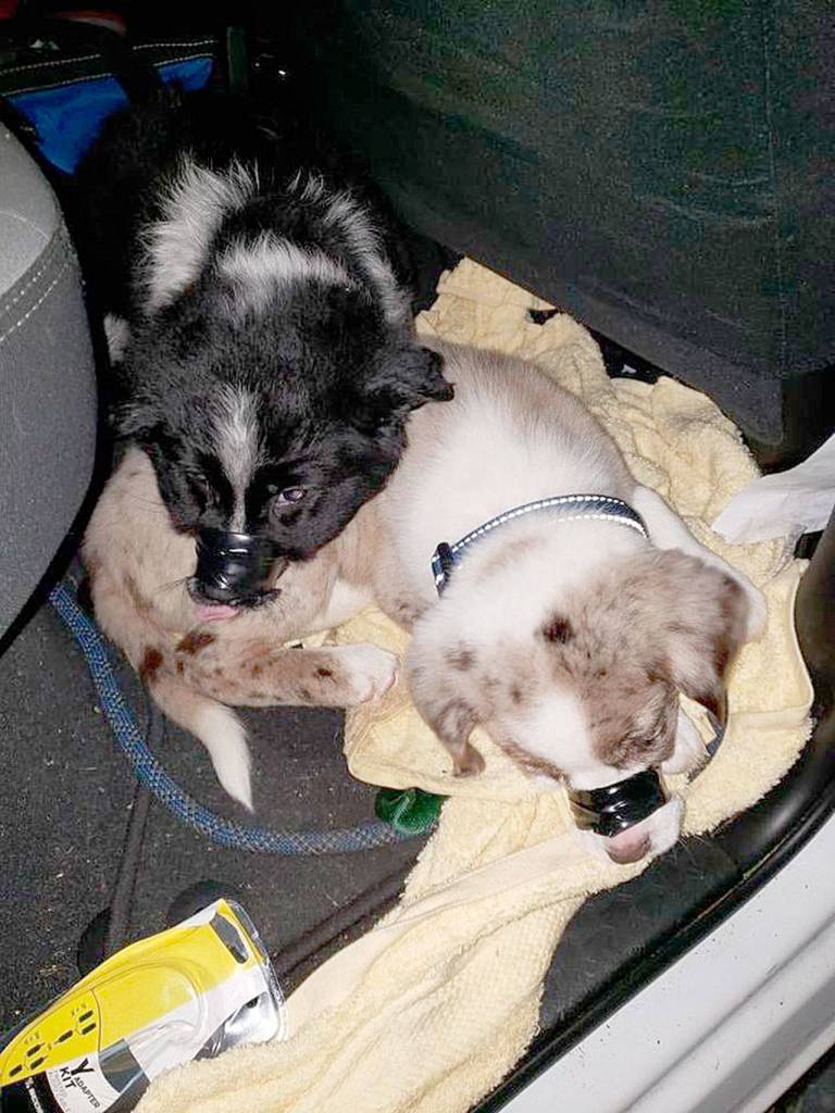 Two approximately 10-week-old puppies were found with their snouts bound by electrical tape. (Olympic Peninsula Narcotics Enforcement Team)