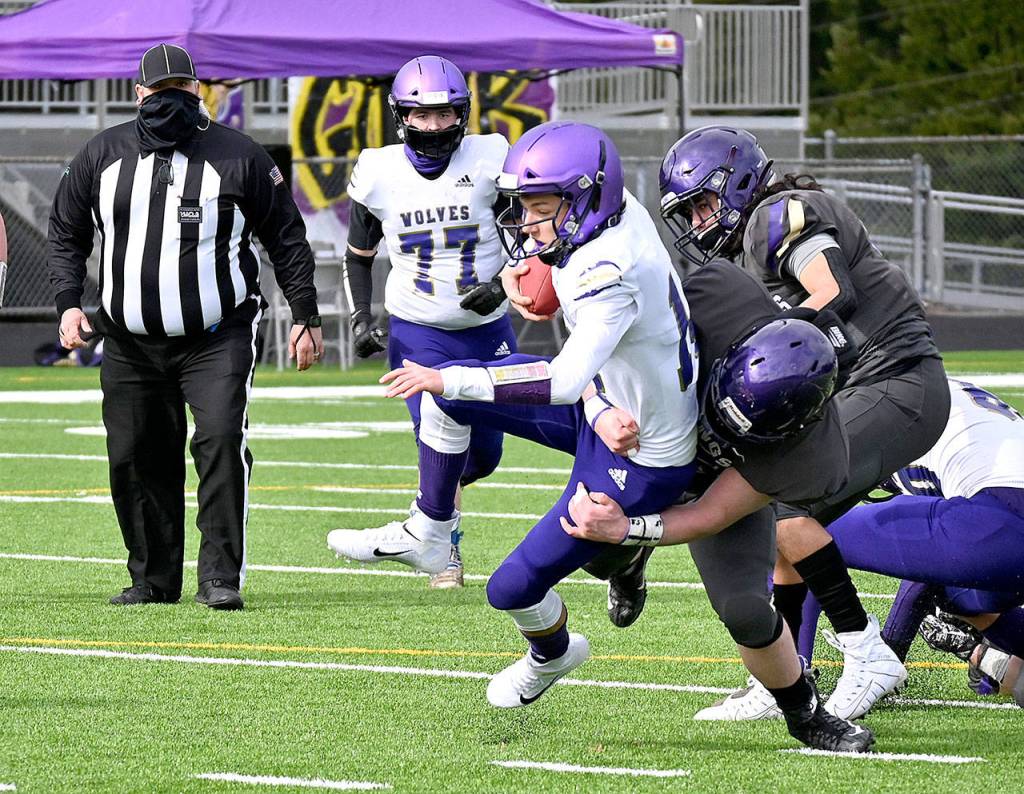 POULSBO — Missing a host of starters on both sides of the ball, Sequim’s Wolves kept the score close with the reigning Olympic League champions for a half.