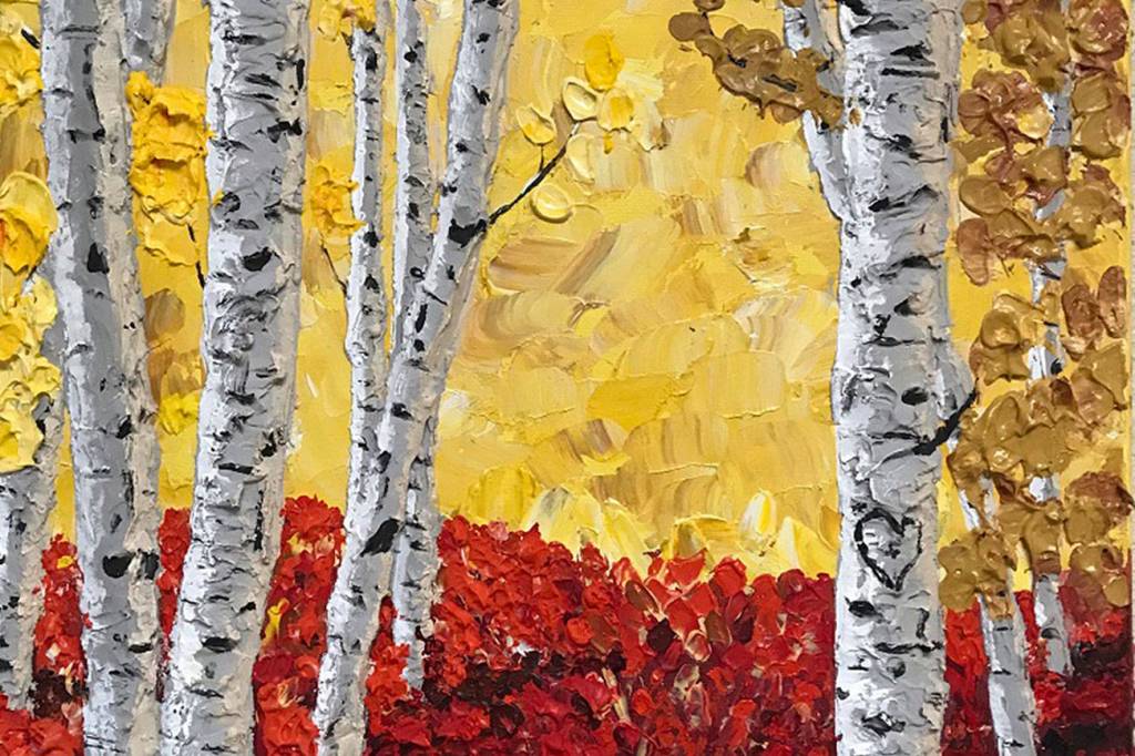 One of the new mediums she has been working with is acrylic build-ups which give a 3-D effect on a flat canvas.