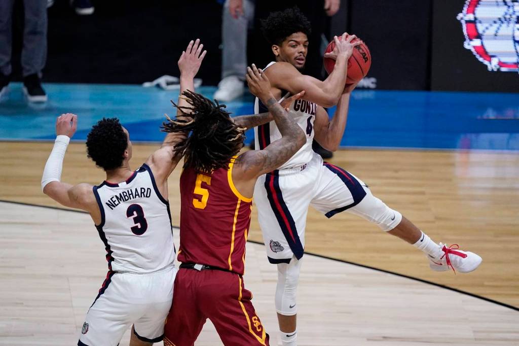 Gonzaga led sixth-seeded USC 7-0 after two minutes, 25-8 after 8:30 and 36-15 after Kispert took a nifty dish from Timme for an easy layup with 6:03 left in the half.