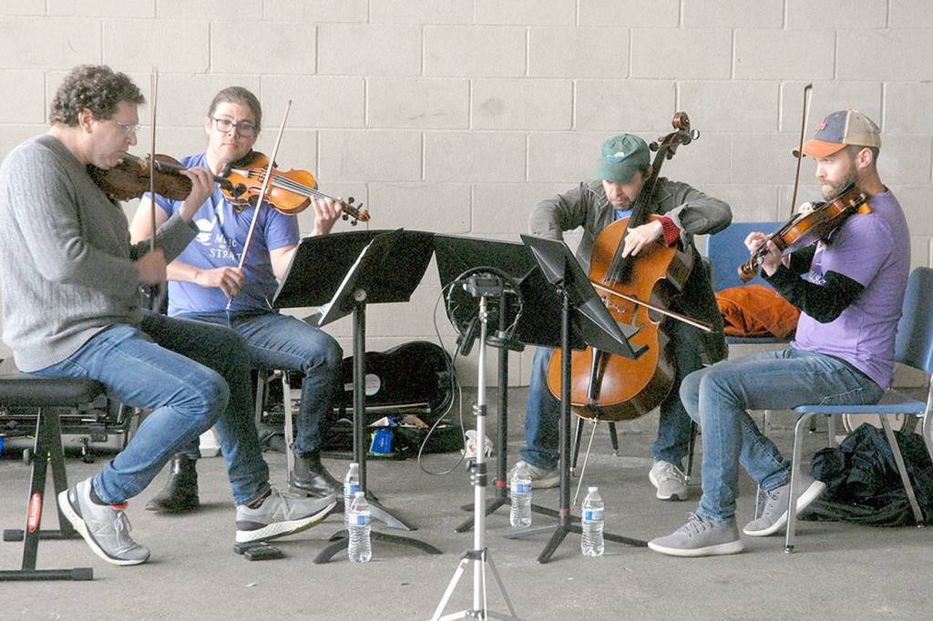 Garlick, who grew up in Port Angeles and went on to the Juilliard School in New York City and a career in music, next got some friends together. They formed an ensemble, and last Thursday, Seattle Symphony concertmaster Noah Geller and cellist Efe Baltacigil, Minnesota Orchestra violist David Auerbach and Seattle percussionist Mari Yoshinaga went with Garlick to Dry Creek Elementary and Stevens Middle School for a pair of outdoor concerts.