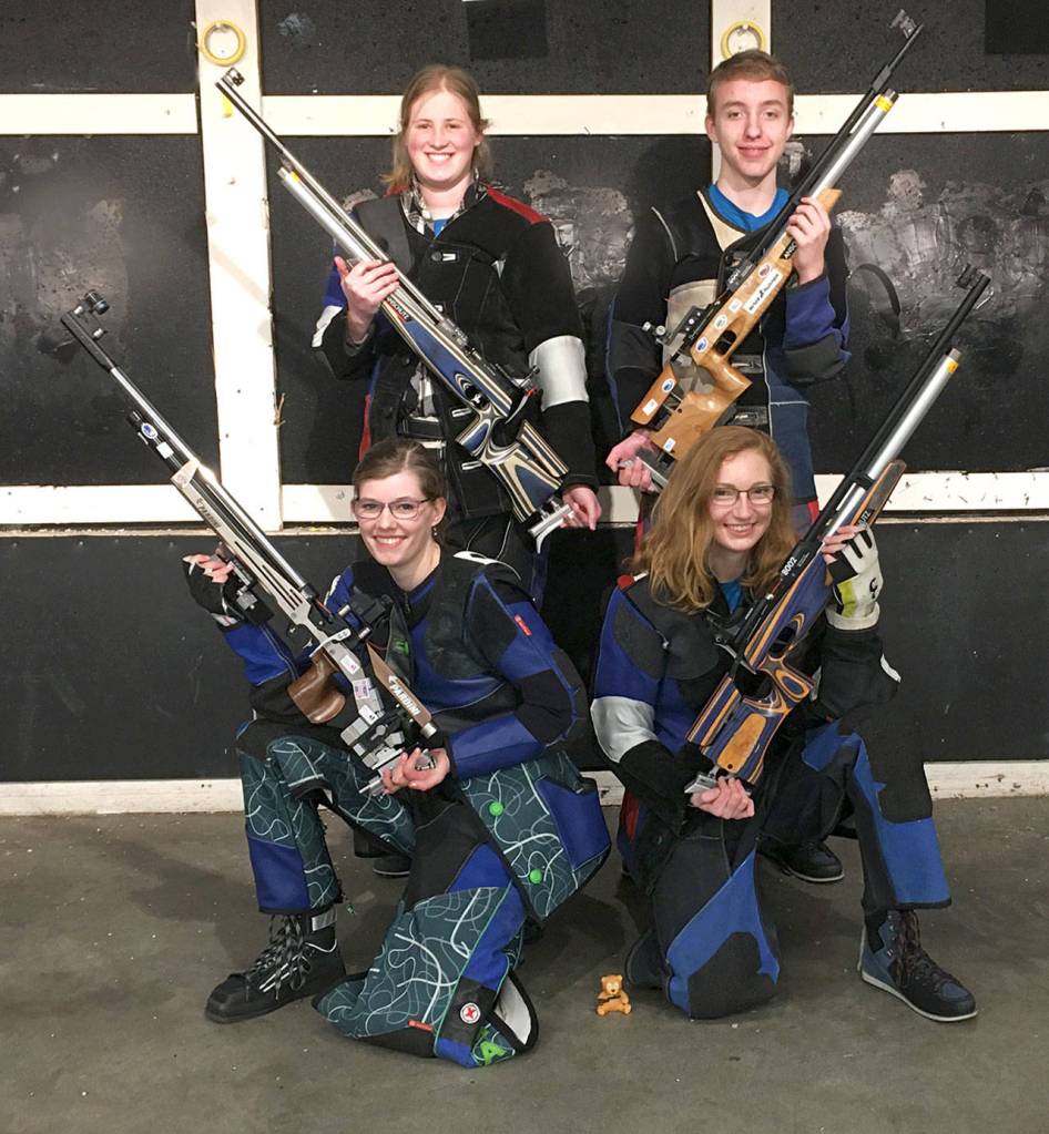 Cheyenne Maggard, Kaeden Murphy and Jenna Sanders of Port Angeles joined their Sabertooth Shooting Squad teammates James Hart and Alexis Kunze of Oak Harbor to win state championships at the Civilian Marksmanship Program’s three-position air rifle competition and the Junior Olympic’s three-position Washington state matches.