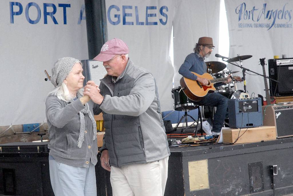 Ann and Steve Johnson of rural Port Angeles dance to the music of John Huard at the season opener of the Concerts on the Pier music series on Wednesday at Port Angeles City Pier.
