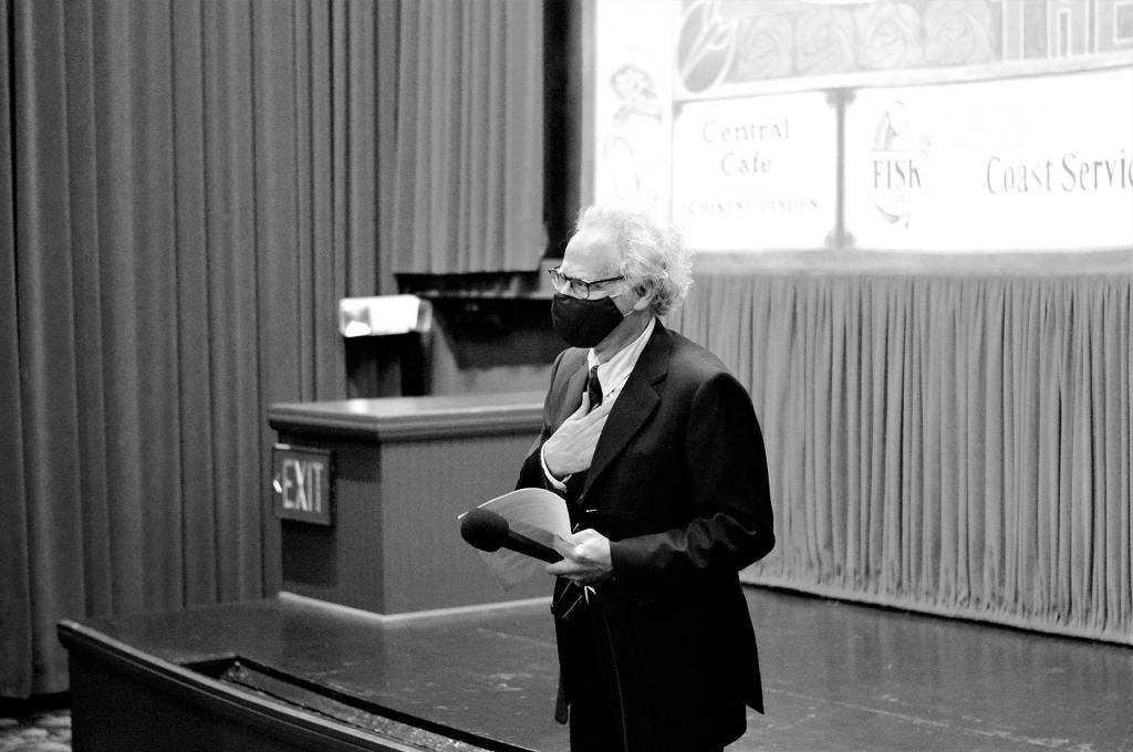 Receiving a standing ovation from the audience at the Rose Theatre on Wednesday night, owner Rocky Friedman expressed his gratitude to supporters who waited 499 days for the downtown Port Townsend cinema to reopen. Friedman also introduced his mother Miriam, 101, during his speech before the showing of the film “The Truffle Hunters,” from Italy. The two-screen movie house is using a MERV-13 air filtration system and selling two-thirds of the seats for each screening.