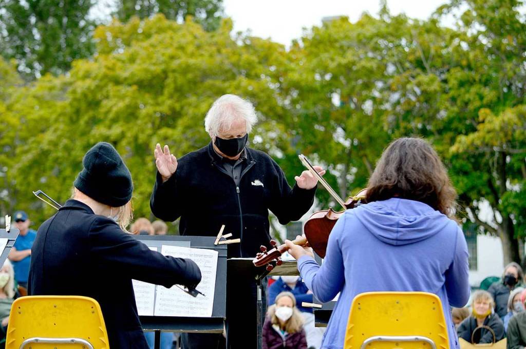 PORT TOWNSEND — Music lovers, teachers and students from across and beyond the North Olympic Peninsula got together for a free concert Friday, filling the air with the sound of violins, cellos, brass, drums and applause.
